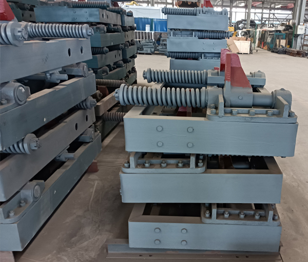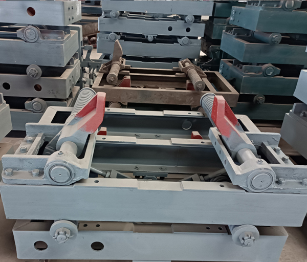 本阻車器阻車時兩個阻爪抱在軌道上,由阻爪阻住礦車車輪實現(xiàn)礦車定位,又稱抱軌式阻車器。阻爪經(jīng)過重新設(shè)計,減小了兩阻爪內(nèi)側(cè)面的尺寸,能夠可靠地阻住礦車,解決了傳統(tǒng)阻車器由于阻爪關(guān)閉不到位造成單邊阻車而導(dǎo)致礦車掉道的現(xiàn)象。具有結(jié)構(gòu)簡單,阻車可靠,維護方便,除阻爪外無突出地面的部件,平整美觀,便于人員通行。